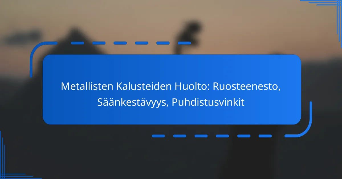 Metallisten kalusteiden huolto on olennaista niiden kestävyyden ja ulkonäön säilyttämiseksi. Säännöllinen huolto, kuten ruosteenesto ja oikeat puhdistusmenetelmät, auttaa estämään vaurioita ja pidentämään kalusteiden käyttöikää. Oikeiden menetelmien ja aineiden valinta on avainasemassa metallipintojen suojaamisessa ja ylläpidossa.