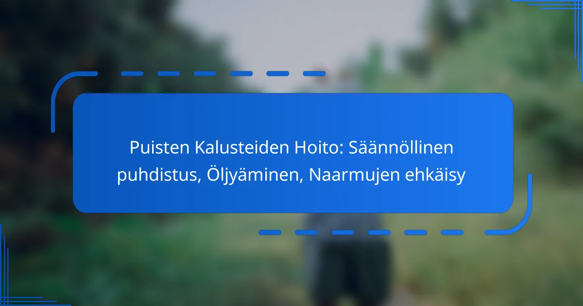 Puisten kalusteiden hoitoon kuuluu säännöllinen puhdistus, öljyäminen ja naarmujen ehkäisy. Nämä vaiheet auttavat säilyttämään kalusteiden kauneuden ja pidentämään niiden käyttöikää.