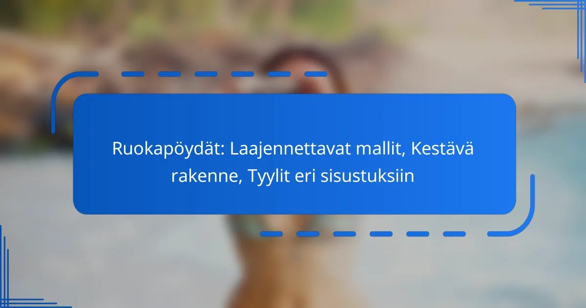 Huomioi myös pöydän koko ja muoto; suuremmat pöydät tarvitsevat tukevampia rakenteita. Laajennettavat mallit voivat olla käteviä, mutta varmista, että niiden mekanismi on kestävä.